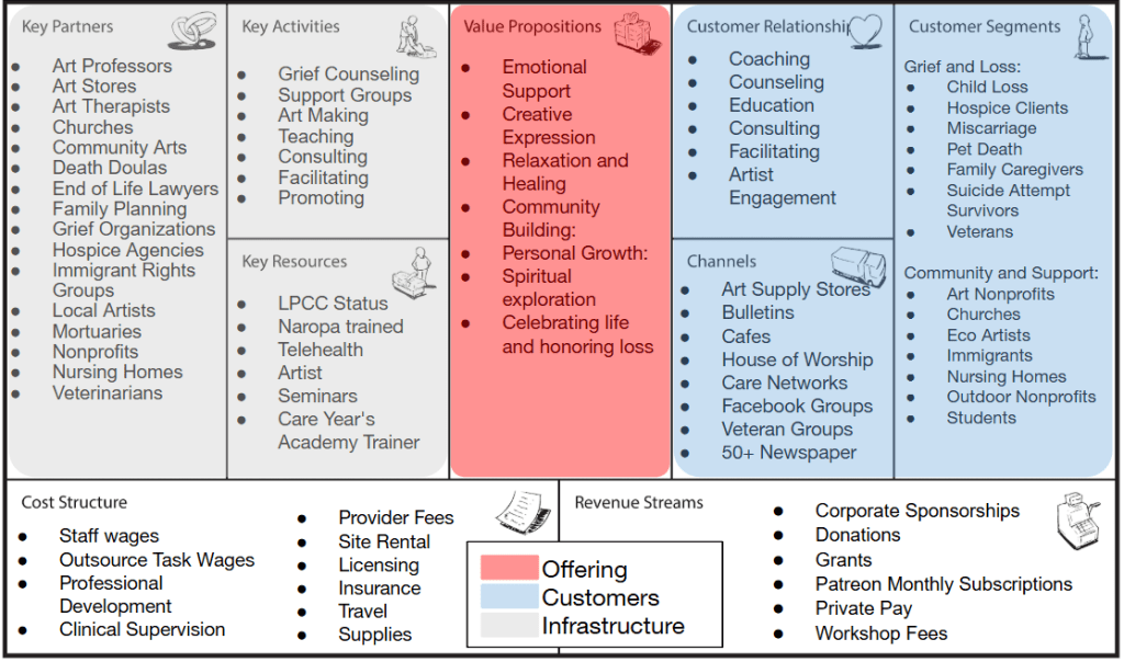 Revenue is another essential dimension. Workshops can be monetized directly through ticket sales, but also indirectly through contracts and grants. Agencies frequently look for external professionals to provide in-service trainings for staff. Schools and nonprofits often have funds set aside for wellness programming and inservice trainings. A well-positioned workshop, with clear outcomes and professional credibility, can attract this kind of institutional support. In fact, Covey’s model thrived largely because organizations saw the value of training their teams and were willing to fund it. Mental health professionals who design thoughtful workshops can tap into similar streams of institutional funding. Brush With Grief is funded through donations and partner programs with organizations like Medicine Horse and The Natural Funeral.