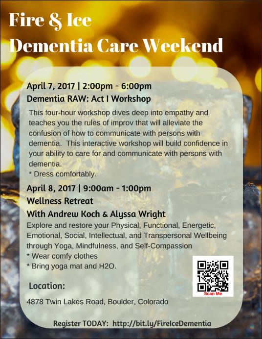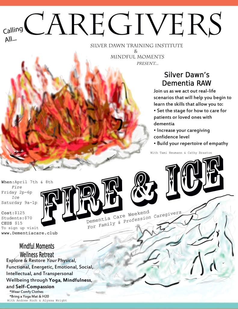 The good “Fire & Ice Dementia Care Weekend” flyer