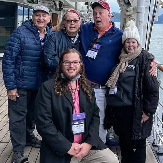 Between 2019 and 2021, Andrew volunteered over 1,000 hours in an externship with Elite Cruises and Vacations, working under Kathy Shoaf, RN, who pioneered dementia-friendly retreats. During this time, he developed a passion for traveling with persons with dementia and their family members. A highlight of this period was in 2021 when he led a group excursion of four persons with dementia and their family members on a fishing trip in Ketchikan, Alaska. By the end of the excursion, filled with salmon catches and seals squirreling around in brackish waters, over 100 people were clapping and encouraging the group as they fished. This heartwarming experience sparked community interest in making port excursions more accessible to individuals with dementia and in wheelchairs.